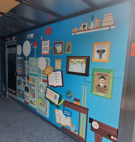The Bee Green Plastic STEAM* Machine creates an educational experience for youth of all ages to understand the history of plastic and the current plastic crisis facing our planet. Inside the 14 foot enclosed trailer students can understand how plastic is made through an exhibit style discovery.